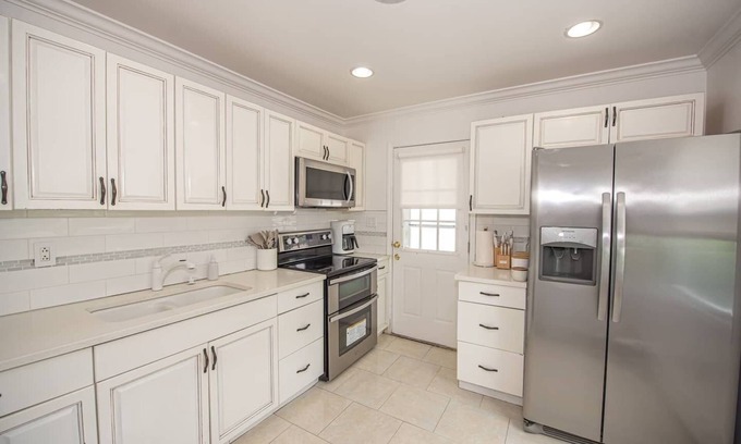 Welcome to our one-story home located on Long Island, NY! With three bedrooms and exquisite English-style decor, enjoy a delightful stay. Relax in the grand master bedroom with a private sitting room. Gather around the fire pit area, enjoy the patio living. Only 45 - 1hr from NYC and the Hamptons, 20 minutes from beautiful beaches.