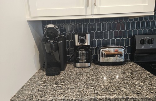 The ground-level is also home to the primary master suite, offering King Bed, beautiful glassed-in shower , dual vanities and walk-in closet. Settle in and get comfortable- it's gonna be a great week!