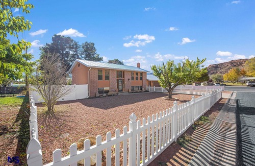 Kanab Bliss welcomes you! Immerse yourself in the beauty of Kanab. Our corner lot in a peaceful neighborhood puts you right next to breathtaking vermillion cliffs. Make yourself at home and enjoy the incredible scenery. Enjoy the privacy and security of a fully-fenced yard. The backyard has a 6-foot high solid privacy fence and the front yard has a 3 foot high picket fence, great for keeping kids and pets safe.