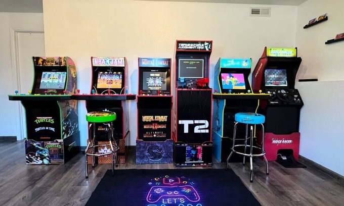 Get ready for endless fun downstairs! Kids and adults will find plenty to enjoy. The game room is a haven for gamers and fun-seekers alike. With classic arcade machines, a dartboard, and a variety of board games, and a smart TV, there's something for everyone.