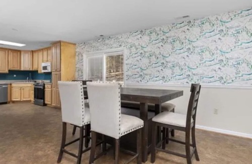Relax in a quaint mountain-lodge themed 4 bedroom/2 bath home with beautiful Mountain View’s making it a serene escape! We are conveniently located in between Hot Springs village and the Homestead Resort or Warm Springs village and the Jefferson Bath houses! Enjoy access to mountain trails, resort & spa activities, 5-Star dining and the area geo-thermal springs renowned for its healing & relaxing qualities. Revel in seclusion with a spacious wooded lot l, fire-put & backyard grill while enjoying incredible views of Warm Springs Mountain. We are pet-friendly with a completely fenced yard. Accommodate extra guests with 2 sleeper sofas in the recreation room and 2 futons in the living room. Enjoy high end Samsung appliances. Your hostess offers adventure activities at a private 170 acre wilderness mountain retreat for a fee including: guided fishing trip on lake Moomaw, fly-fishing a private stocked stream, ATVing, alpine mountain hiking, forest-bathing, sound bath, waterfall meditation sessions, cascading in the gorge, float experience in a mineral spring fed pool under a waterfall and gourmet picnic at the falls. You will love taking in the dark skies perfect for Star-gazing, mountain forest solitude and exploring the wooded trails and wildlife. Hunting and fishing excursions also available.
