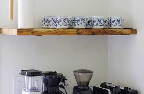 The Primary bedroom features a King bed, a workstation facing the best views of the property, an ensuite bathroom, as well as a small porch and direct stair access to the backyard and outdoor spa. The 1st Guest bedroom has a Queen bed and the 2nd Guest bedroom has two bunk beds (i.e. 4 twin beds). The two Guest bedrooms share a full bathroom that opens into the hallway. We also have a full-size crib which we can set up in either bedroom upon request, and every room has a sound machine.