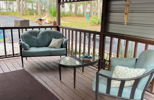 Enjoy a peaceful stay in our fenced and gated home surrounded by nature. The private 1-bedroom home features a covered porch for relaxing and bird watching. The cozy bedroom loft features a comfortable queen bed and separate A/C for the perfect night's sleep. Amenities like WiFi, a hair dryer, games, and well equipped kitchen help guests feel right at home. The bathroom is equipped with a shower and additional amenities. Birds are in abundance and a daily visit from American Bald Eagles. Owners live on opposite side of property (in separate home), working towards sustainability in their greenhouse. The property is completely surrounded by a 14-20’ metal fence with gates for ultimate privacy. Outdoor furniture, loungers, fire pit, board games and grill are readily available to use. This is a place to unwind after a day of travel or reboot and soak in nature. We are new to VRBO, but not to hosting. Check out our reviews on the other hosting site that starts with an A!