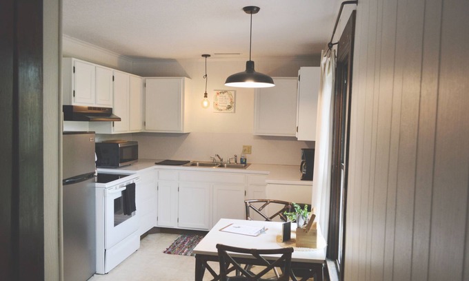 This is a second floor apartment with modern Boho-styled decor, remodeled spaces and geared toward longer stays. Set in the small town of Sugarcreek, famous for it's rolling hills and Swiss-styled architecture, this cozy apartment is a small home-away-from-home. Conveniently located 10 minutes off of I-77, on the outskirts of Amish Country. A five minute walk to Main Street. Coffee shops, bakeries, a variety of restaurants, shopping centers and attractions all within a 5 minute drive. Amish Country attractions are a convenient 10-15 minute drive away.