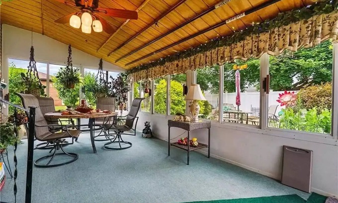 The peaceful shaded backyard and air conditioned four-seasons room make enjoying warm afternoons a "breeze".