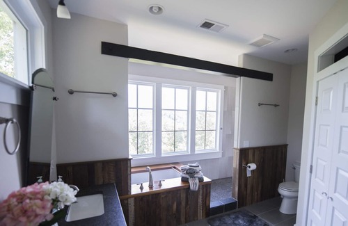 Master Suite boasts 700 sf of total bliss, from the luxury 500 thread count linens, king size bed with Pillow top mattress, LCD television, six foot soaking tub with a walk in tile shower. But the best feature of all is the view that encompasses you. Whether you are soaking in the tub, reading a book or lying in bed, you will be awestruck by the morning sunrise rising from the hillside.
