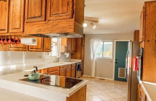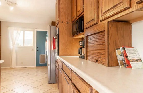 Inside the home has been fully remodeled with new floors and beds. I would describe the vibe as western Colorado modern. There is also a dog door in the kitchen to allow your fur babies to join you in our fenced in private orchard.