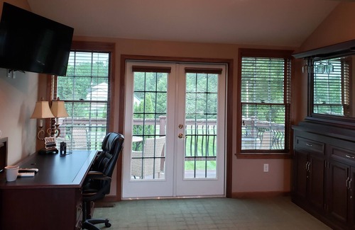 Sitting on 5.24 acres, this home offers a private heated pool closes after Labor Day weekend. Sleeps 12. Pool table in the basement, huge firepit, and Columbus landmarks to visit within less than an hour. The pond in the front with 2 fountains are a wonderful view from many areas of the home and are beautiful at night. If you care to fish and throw them back, just bring a pole or the hostess will have a few on hand! The very large fire pit is great for roasting marshmallows with the kids. The home and 2 story connected by breezeway sleeps 10-12 adults comfortably with 3 King beds, 1 Queen, 1 double/twin trundle, and another double. There is another 1/2 bath in basement making it 3 full and 2 half. Less than 5 minutes will get you to many stores and restaurants. Hocking Hills is less than 40 minutes away! Columbus activities all under an hour including the famous COSI, Columbus Zoo, and Zoombezi Bay. Approximately 30 minutes will get you to Downtown's many attractions, such as Short North, Nationwide Arena which is home of the Blue Jackets, and many great restaurants. Kings Island is also 1 hour 40 minutes away!