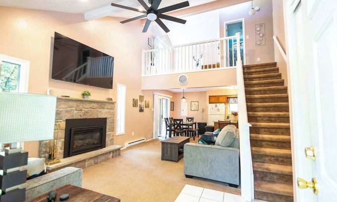 Guests have full access to the entire home, including the indoor fireplace, grill, and parking areas. Additionally, guests can enjoy the private lake, playgrounds, fields, tennis courts, basketball courts, and kayaks within Towamensing Trails.