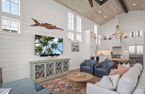 This C Shell is keeper! A beach home with bay views, side yard, and designer details, it invites you to relax! Enjoy beach life on multiple porches and friendly gathering spaces. You’ll have proximity to North Town Center, a community fire pit, and Still Water Pool with the beach a stroll or golf cart ride away!