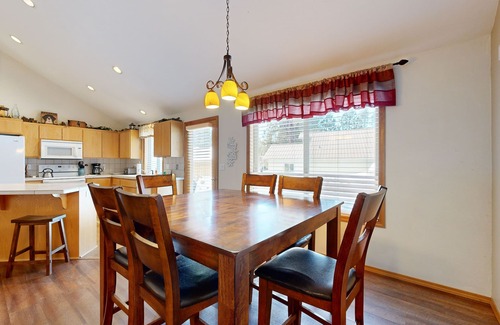 Unwind in this three-bedroom Sunriver vacation home with a great backyard and private hot tub for eight special guests! The lovely home is located at Sunriver, a family-friendly community with fantastic amenities! Shop at The Village, wander miles of mixed-use trails by foot or horseback, many public t golf courses in the area, or splash at the SHARC - a state-of-the-art aquatics center!