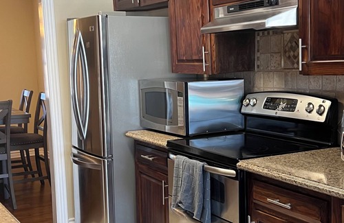 Home away from home. Three bedrooms master bedroom has its own bathroom. Two other bedrooms with plenty of space as well. Desk/chair to work remotely with fast WiFi. Enjoy peaceful summer days/nights in the pool or just relax on the deck with a beautiful view of the city. Pullout sofa bed available. Unit sleeps up to 8 people.