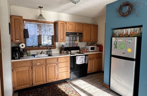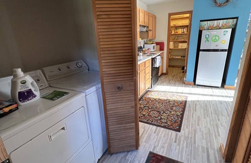 Entry hall with closet and washer/dryer. Leading to the kitchen (fully stocked) and pantry. Opening up to the living room and dining area. The windows and sliding door to the porch overlook the spring fed pond with koi fish and the mountain view. You’ll also see my horse barn(future chicken coop for fresh eggs) and the orchard I’m growing. The living room has a daybed with a pull out trundle bed offering two twin beds with memory foam mattresses. Smart TV mounted and a very strong wifi signal. Bathroom is located upstairs and is fully stocked. Upstairs bedroom has a king size bed and walk-in closet. There is a gas grill on the porch and a fire pit on the property as well. Private parking. Minutes from all the shops and restaurants in town and only a short drive to Bromley and Stratton ski resorts. No cleaning fees or pet fees.