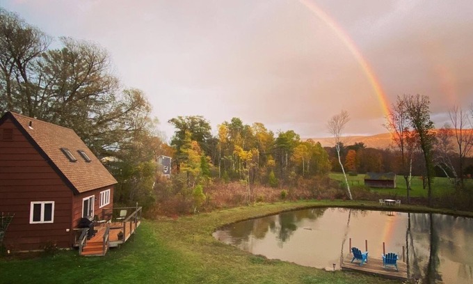 Home with a spring-fed pond and mountain view. | Cottage in Manchester