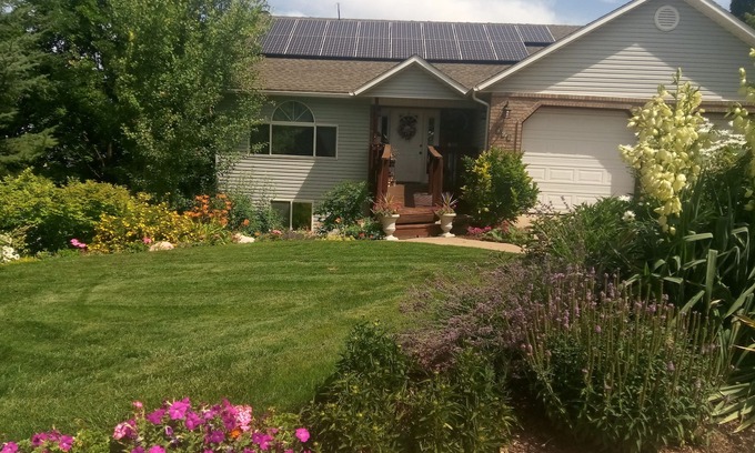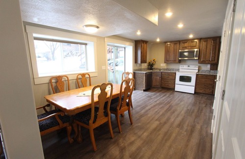 Walkout, well lit basement apartment with two bedrooms, one bathroom with full living room and full kitchen fully stocked. Sleeps six. Big yard with playground for children. Has great views of the mountains and valley
