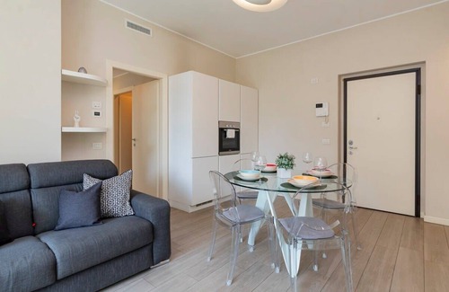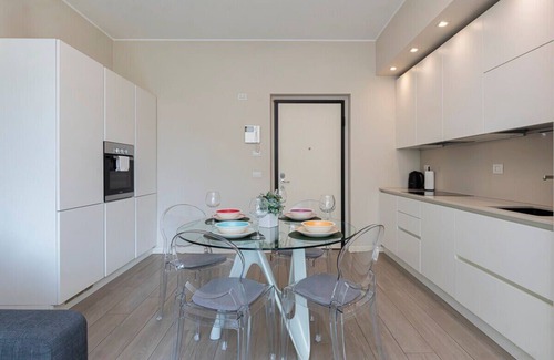 This elegant apartment has been specially designed to offer comfort and functionality with a touch of contemporary style. Upon entering the apartment, you will be greeted by a bright and welcoming environment. You will immediately notice the attention to detail and modern design that characterizes the entire space. The living room is the central space of the apartment, tastefully furnished and equipped with modern and comfortable furniture. A large sofa invites you to relax after a busy day, while a flat-screen television allows you to enjoy moments of entertainment. Large windows and a private loggia terrace illuminate the living room with natural light, creating a pleasant and welcoming atmosphere. The open kitchen overlooks the living room, creating a convivial environment ideal for entertaining guests. This modern kitchen is fully equipped with high quality appliances, including induction stove, oven, refrigerator, dishwasher. The large shelves offer enough space to prepare delicious meals. The bedroom is an oasis of relaxation and tranquility. Furnished with a comfortable bed and high-quality linens, this room will provide you with excellent sleep. A large wardrobe with sliding doors provides enough space to store your clothes and personal items. The bathroom is designed with a modern and clean style, equipped with high quality sanitary ware and will be supplied with towels and personal hygiene products to make your stay even more comfortable. The apartment has free WIFI, allowing you to stay connected to the outside world. The air conditioning or heating will allow you to adjust the temperature according to your preferences, ensuring a comfortable stay in any season of the year. The apartment is located in a convenient and well-connected area, close to shops, restaurants, public transport and other amenities, as well as the Portello shopping center within walking distance and the City Life shopping center also close by. This privileged location will allow you to easily explore the city and discover all its attractions. A few minutes' walk away is the M5 metro line as well as the tram lines 1,14,19... all perfectly connected to the center and the main railway stations.