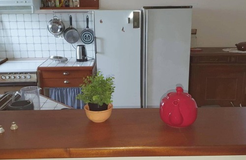 The apartment features a large, unfenced garden where guests can relax on sun loungers and enjoy the fresh air. There’s a barbecue area for cozy family gatherings and a petanque lane for some fun in the sun. The view of the mountains creates a calming backdrop that guarantees an unforgettable nature getaway.