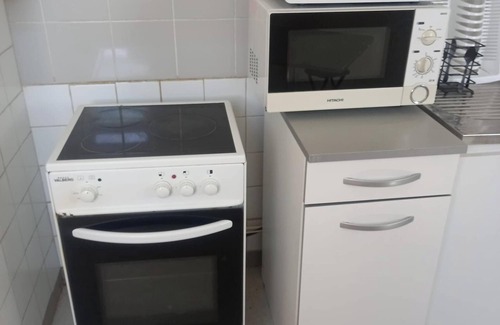 The interior of the apartment is stylishly designed for comfort. You'll find a cozy living area with a flat-screen TV, encouraging relaxation after a long day of sightseeing. The practical dining space is ideal for enjoying home-cooked meals.