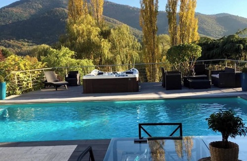 Outside, you will find a lovely garden with a private pool open from June 1st to September 30th, perfect for cooling off on warm days. Enjoy the wonderful outdoor area with a jacuzzi for unwinding. There is also a barbecue for delicious meals under the open sky.