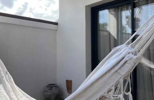 The enclosed garden is an oasis of tranquility, perfect for relaxing moments in the hammock or on the sun loungers. Enjoy your morning coffee on the inviting terrace with mountain views. The well-maintained outdoor space invites cozy barbecue nights with friends under the stars.