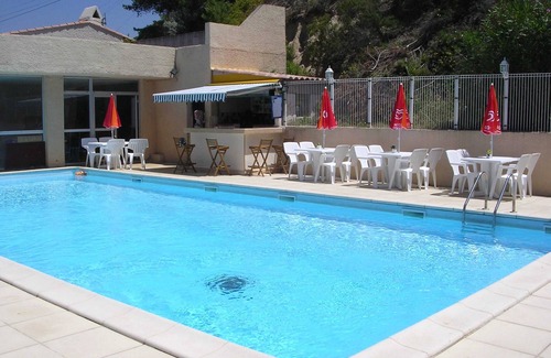 Outdoors, you can indulge on the sunny terrace equipped with a comfortable set of garden furniture and a parasol to provide shade on hot days. The shared swimming pool is an ideal spot to unwind and soak up the sun, open from June 1 to September 30. The area offers stunning views of the sea and surrounding mountains.