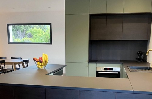 The kitchen is well-equipped for cooking up your favorite meals. Enjoy your feast around the dining table which seats 5 or outside, on the terrace or in the garden.