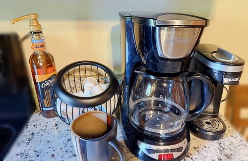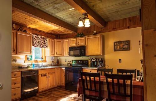The Homestead contains a kitchen with a dishwasher, microwave, electric oven, all necessary dishes, a refrigerator, a coffee maker, and other miscellaneous features. There is also a living room with an HDTV for your streaming purposes. There is a DVD player with several DVDS, a love seat and a couch, and a gas fireplace (closes April 30th for the season) for the perfect cozy evening in. Flannel sheets are available upon request.