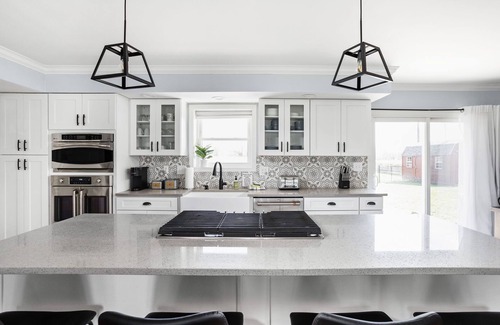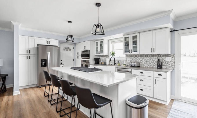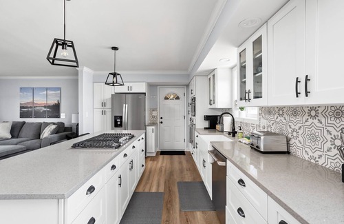 From the moment you step in the front door of Hometown Hideaway, you will be in awe of the space and decor. Professionally designed and decorated with all the features that you would expect at your home. All you need to bring is yourself. The kitchen is stocked with every cooking utensil and supply you will need and probably more than you could even use during your stay. The kitchen includes: