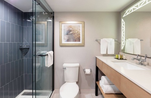 Recreational amenities at the hotel include a fitness center and a seasonal outdoor pool.