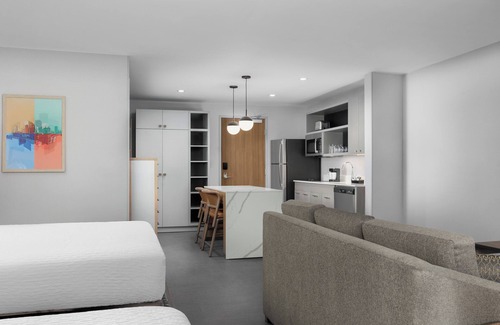 Homewood Suites By Hilton Newport Cincinnati offers 133 air-conditioned accommodations with safes and coffee/tea makers. Accommodations offer separate sitting areas and include dining tables. 50-inch Smart televisions come with cable channels and Netflix. Accommodations at this 3-star hotel have kitchens with refrigerators, stovetops, microwaves, and cookware/dishes/utensils. Bathrooms include complimentary toiletries and hair dryers.