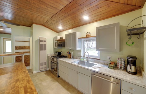 Your cozy Michigan getaway awaits at this lakeside 2-bedroom, 1-bath cottage in Alto. Situated a short drive from Grand Rapids, this warm vacation rental offers families a quiet haven with numerous fun-filled amenities. Start your mornings with breakfast on the patio followed by a day of boating, paddleboarding, and spreading out in the spacious yard. Explore nearby attractions like the Frederik Meijer Gardens and Sculpture Park before retreating to your own grill, fire pit, Smart TV, and more.