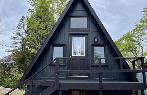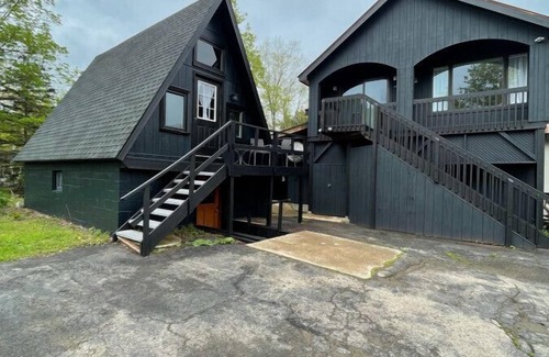 Honest, this unique place has a style all its own! This A-frame is an upper-level unit that sits on the property across the street from the Holiday Valley Inn. With a few short steps away from Sunrise chairlift, our guests have the most convenient and peaceful location available, with a ton of private parking. The porch offers incredible views of the slopes, especially at night!