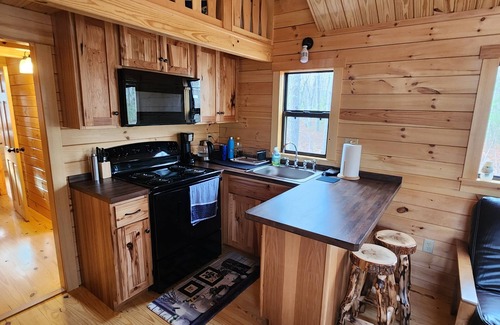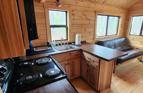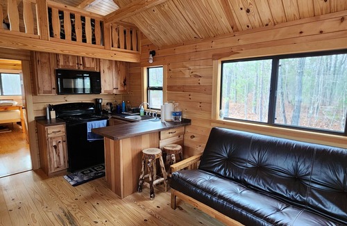 Enjoy the peace and serenity at this very secluded cabin in the woods. While this cabin is modeled after the "tiny homes" it has a spacious layout! The master bedroom has a queen size bed and has gorgeous views of the woods. There is an extra wide hallway that holds a bunk bed. The loft (which is only about 4' tall) offers floor style beds & a TV which is perfect for lounging and kids. Active HoneyBee Hive Boxes on Premises. Across from Lake Huron. Cabin is on 30 acres- perfect for nature hikes!