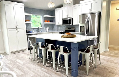 Honey Creek Hideaway · Modern Home w/Huge Deck, 1/2 Acre, Close to Lake has 3 Bedrooms , 1 Bathroom, and max occupancy of 9 people. The minimum rental for this property is 1 nights, but this can change depending on the season you plan on staying. Previous guests have given good rated it, and VRBO labeled it a top-rated House because of the excellent services rendered by the owner or manager of this House, and has consistently provided great experiences for their guests. Most families or guests that use it recommend it to their friends and some of them are repeat guests. House has a friendly neighborhood, and the Grove has interesting places to visit. If you want to learn more about the House in Grove, such as places to visit and things to do nearby, you can check below to learn more.