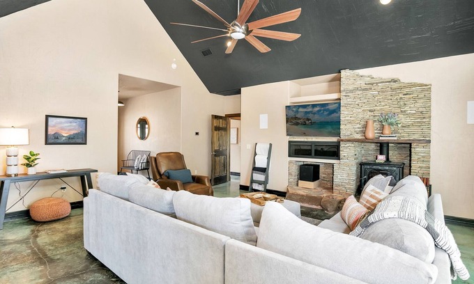 Best-rates for the Fredericksburg house starts from $247 per night with includes Barbecue/Outdoor Cooking, Laundry, Air Conditioner, TV, Bedding/Linens, Wellness Facilities, Child Friendly, Internet, Kitchen, Parking, Security/Safety, Fireplace/Heating StayAndPlay offers fully equipped golf villas, golf hotels, golf resorts, luxury golf cabins, and exclusive golf retreats, making it easier than ever to find your perfect golf escape — ideal for families, peaceful getaways, or pet-friendly retreats with the whole crew.
