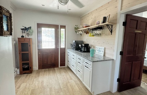 In the kitchen we have a crock pot, blender, toaster, drip coffee maker, espresso maker, nugget ice maker, microwave, and all the cooking essentials you need.