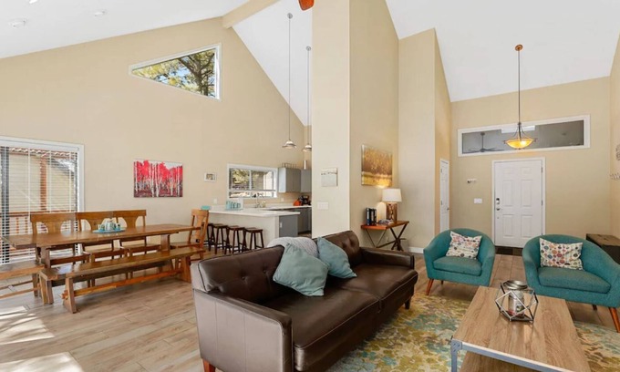 Best-rates for the Flagstaff house starts from $495 per night with includes Pet Friendly, Wellness Facilities, Fireplace/Heating, Barbecue/Outdoor Cooking, Child Friendly, Internet, Air Conditioner, TV, Balcony/Terrace, Sports/Activities, Bedding/Linens, Laundry, Entertainment, Kitchen, Parking, Security/Safety StayAndPlay offers fully equipped golf villas, golf hotels, golf resorts, luxury golf cabins, and exclusive golf retreats, making it easier than ever to find your perfect golf escape — ideal for families, peaceful getaways, or pet-friendly retreats with the whole crew.