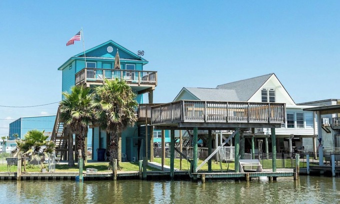The home is located on a large and deep canal with a view of the Gulf, and within minutes to Surfside Beach. The exterior features a 24x16 deck over the boat slip, pier, outdoor shower, another 20x12 bottom deck, and a covered porch. The first floor features an open-concept main area to include a full size pull out sofa bed, fully-stocked kitchen, full bathroom, and laundry room. The second floor has a full bathroom and two bedrooms (Bedroom 1 - King bed Bedroom 2 - Bunk Bed Twin/Twin) that each have access to a 20x12 balcony leading to the deck.