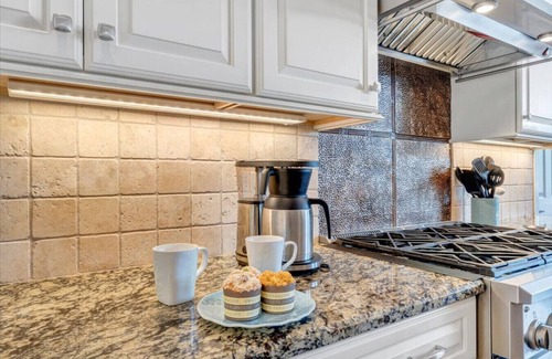 Inside, the home is thoughtfully designed to accommodate your entire group comfortably. The open-concept living area is ideal for gathering with family and friends, while the fully equipped kitchen makes preparing meals easy and enjoyable. Hardwood floors throughout the living room, dining area, and foyer add warmth and charm, while the open Gourmet Kitchen with a central island invites lively conversation and great meals, all with breathtaking views of the water and mountains as a backdrop. A cozy sunroom just off the kitchen offers a quiet spot to relax, surrounded by lush landscaping and a tranquil waterfall feeding a live Koi Pond.