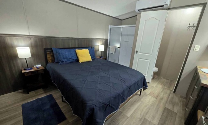 Here to fish?? This hotel style space is perfect for your next fishing trip! Featuring a queen bed and bathroom with a shower. The kitchenette has mini fridge, microwave and coffee bar for some quick eating for yourself or cook on the park style charcoal grill after a great day on the lake! Located near bird island and the 154 bridge. Waterfront, boat ramp and outlets for boat charging *their is also an identical space across the way for your buddy
