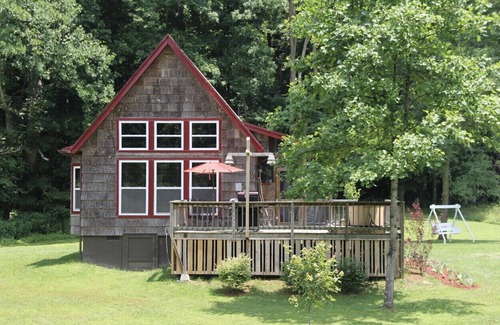 Hooting Hollow Cabin is nestled privately along side the babbling water way of the Williams River and bordering the wilderness of Monogahela National Park.