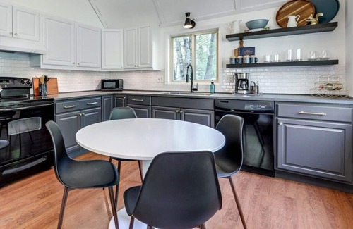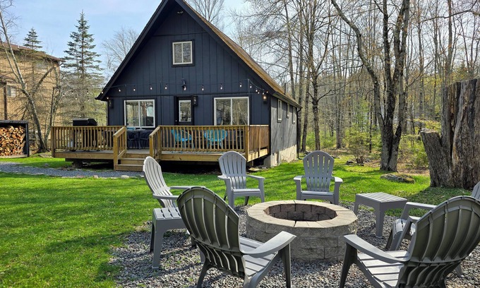 Hopskip Modern Chalet Firepit Gas Grill Deck Private Walk to Lake | Ski Chalet in Pocono Lake