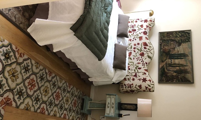 Queen Bed, Oversized Walk-in Shower, Lux Linens, Armoire type desk, French farmhouse Dining Table, Pierre Deux fabrics. Can provide an Air Mattress. Suitable for 2 for a long term and 4 for a short stay. More than 2 guests are $30.00 per per per night. Limited to 4 guests.