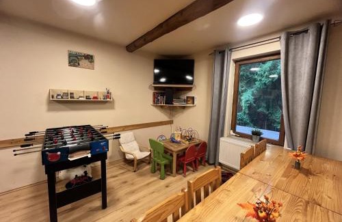 Horská Chalupa Nad Zubačkou is a recently renovated chalet in Desná where guests can make the most of the garden and barbecue facilities. The property is around 14 miles from Szklarki Waterfall, 14 miles from Kamienczyka Waterfall, and 14 miles from Szklarska Poreba Bus Station. There's an outdoor fireplace and guests can use free Wifi and free private parking. Featuring a terrace and mountain views, the spacious chalet includes 6 bedrooms, a living room, flat-screen TV, an equipped kitchen, and 3 bathrooms with a shower. Towels and bed linen are available in the chalet. There's also a seating area and a fireplace. Guests at the chalet will be able to enjoy activities in and around Desná, like walking tours. Skiing, cycling, and hiking are possible within the area, and Horská Chalupa Nad Zubačkou offers ski storage space. Izerska Railway is 15 miles from the accommodation, while Dinopark is 16 miles from the property. Pardubice Airport is 73 miles away.