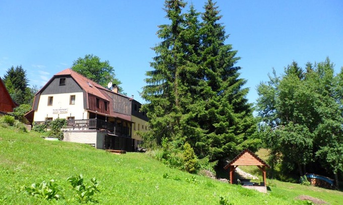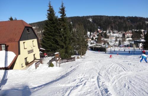 Surrounded by the Jizerské Mountains and right next to the Bedřichov Ski Area, Horská chata Hubert offers a self-catered accommodations, a restaurant, a terrace, a garden with barbecue facilities, luggage storage, ski storage and a children's playground. Free WiFi is available in all areas and free private parking is possible on site. All units in Horská chata Hubert come with a TV, a desk and a private bathroom with a shower or a bath tub. Most of the rooms have a seating area and the apartment consists of a well-fitted kitchenette with a dining area. The nearest restaurant and a grocery store can be found within 984 feet. Other surcharged facilities include a sauna and a hot tub. An array of activities can be enjoyed on site or in the surroundings, including skiing, cycling and hiking. The Janov nad Nisou Bobsleigh is located 1.9 mi away and the Bedřichov Přehrada Lake can be reached within 3.1 mi. The Aquapark Babylon and the Liberec Zoo are in a radius of 6.2 mi.