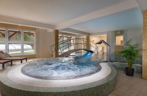 Horský hotel Remata features a garden, terrace, a restaurant and bar in Ráztočno. Featuring room service, this property also provides guests with a playground. The hotel has an outdoor swimming pool, indoor pool, evening entertainment and a shared lounge. At the hotel, rooms contain a desk. Featuring a private bathroom with a shower and a hairdryer, rooms at Horský hotel Remata also feature a mountain view. The rooms at the accommodation come with a flat-screen TV with cable channels and a safety deposit box. A buffet breakfast is available at Horský hotel Remata. At the hotel guests are welcome to use a hot tub. You can play table tennis at this 3-star hotel, and the area is popular for hiking and cycling. Languages spoken at the 24-hour front desk include Czech, German, English and Slovak. Kremnica Town Castle is 12 miles from Horský hotel Remata, while Bojnice Castle is 12 miles from the property. Piesťany Airport is 68 miles away.