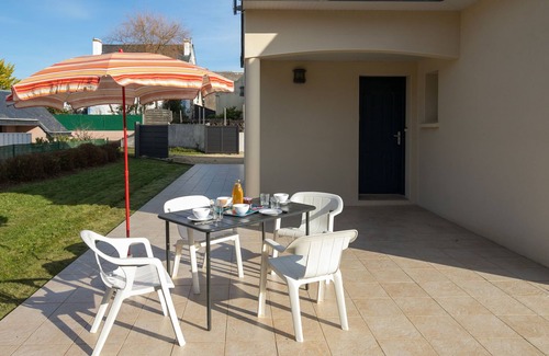 Le Pouldu: Cosy 2-family house "Hortensias 2". 5.5 km from the centre of Clohars-Carnoet, 10 km from the centre of Guidel, in the residential district, excellent location: right in the centre but still quiet, 170 m from the sea, 170 m from the beach, in a cul-de-sac. For shared use: property 800 m2 (fenced). Private: well-kept garden (not fenced) with lawn 100 m2, parking on the premises. Shop 5.5 km, grocery 350 m, supermarket 5.5 km, restaurant 150 m, bakery 100 m, bus stop 330 m, sandy beach "Plage des Grands Sables" 150 m. Sports harbour 2 km, surf school 1.7 km, sailing school 400 m, walking paths from the house 120 m. Nearby attractions: Quimperlé 13 km, Pont-Aven 22 km, Concarneau, Ville Close 48 km, Lorient, départ Île de Groix 26 km, Quimper 62 km, Site Abbatial de Saint-Maurice 6.7 km. Hiking paths: GR34, sentier des douaniers 100 m. Please note: Additional accommodations can be booked. Property ref. FR2941.638.1 is situated on the same property.