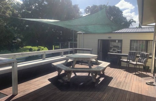The ranch slider on the front deck opens onto a sunny and cosy lounge with a comfortable sofa, smart TV, DVD player, and DVDs. The dining area has a dining table and space for 8 people. This opens out onto a large deck which in turn looks out onto the golf course and has outdoor furniture and a BBQ. Back inside the recently renovated kitchen has everything you need to prepare your favourite holiday meals. In the sleepout you will find some boogie boards to enjoy a day in the surf. 2 bikes are available for guests to use, classic board games and toys, and an old set of clubs if you feel like having a round of golf.