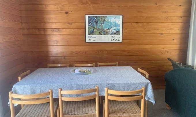 Attention golfers!!!! If you want to stay close to the course, you can't go past Happy Days on the 7th. You are right there on the Lake Golf Course's 7th hole! And even if you are not into golf, this is a classic Kiwi bach done well. Everything you need for a relaxed holiday is right here. Just a 10-minute walk to the beach or shops. This comfy bach has 3 bedrooms, the master has a queen bed, the second has 2 singles and there is a sleepout with 4 single beds, meaning the property comfortably sleeps 8.
