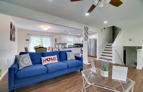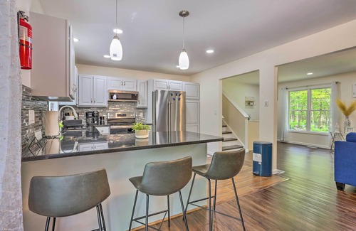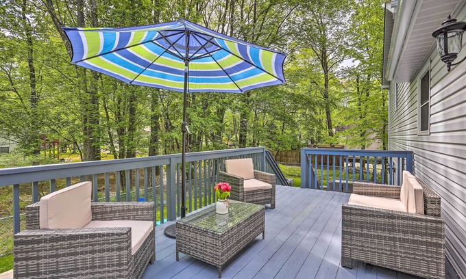 Channel your inner kid and indulge in some good old-fashioned lake fun at this 4-bedroom, 3-bathroom Pocono Summit vacation rental. Situated a short drive from Stillwater Lake, this 2-story house is perfect for a family getaway or a lake lovers retreat. Start your mornings with an al fresco meal on the deck and end your days tallying your scores in the game rooms. Chase the powder at Camelback Mountain Resort, make a splash at Kalahari Waterpark, or trailblaze through Tobyhanna State Park.